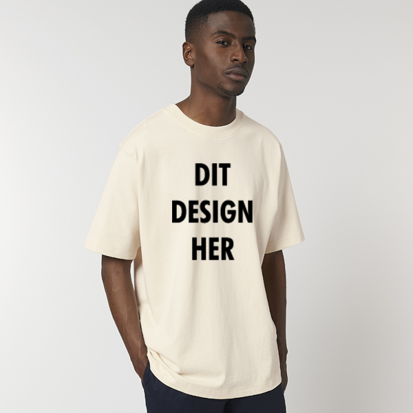 T-shirtens fit er afslappet sit, så dette er en mellemting mellem almindelig fit og oversize fit.